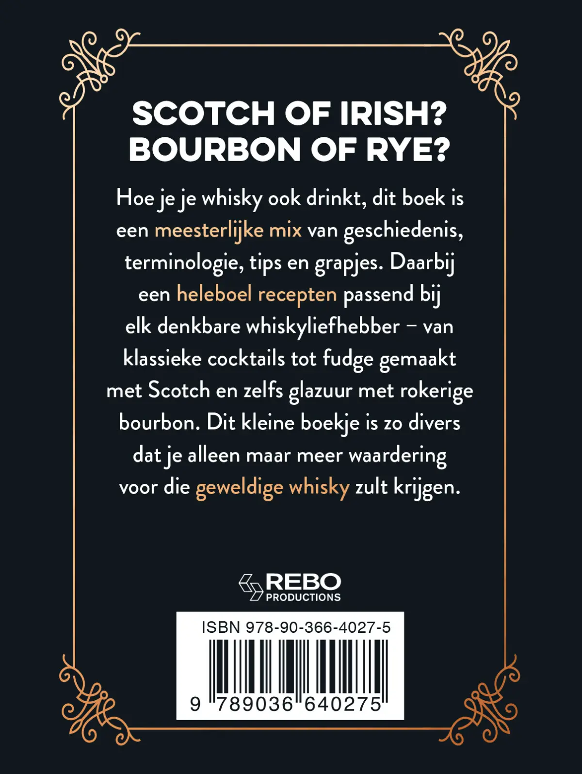 Hoe je je whisky ook drinkt, dit boek is een meesterlijke mix van geschiedenis, terminologie, tips en grapjes. Daarbij een heleboel recepten passend bij elk denkbare whiskyliefhebber – van klassieke cocktails tot fudge gemaakt met Scotch en zelfs glazuur met rokerige Bourbon. Dit kleine boekje is zo divers dat je alleen maar meer waardering voor die geweldige whisky zult krijgen.