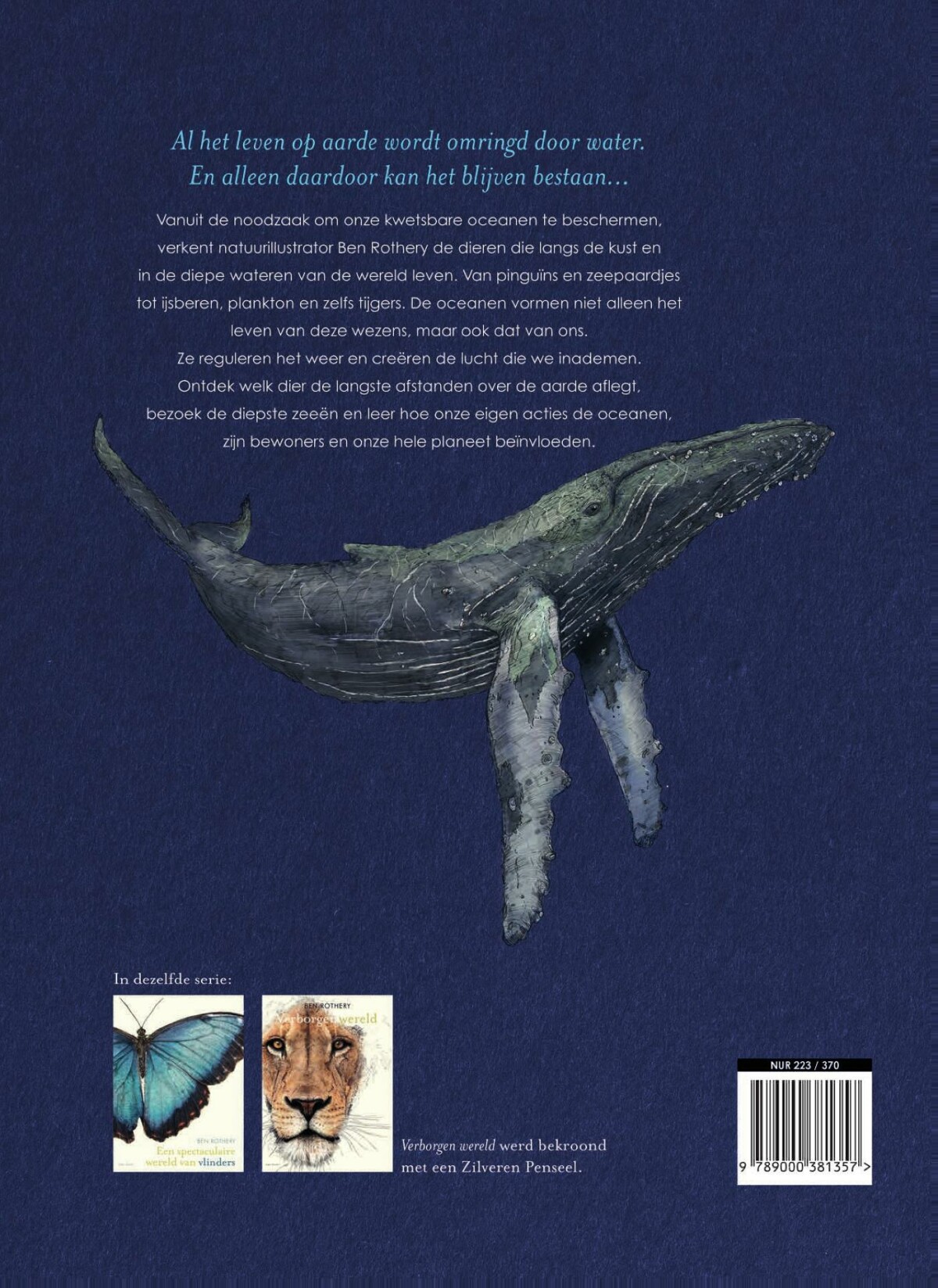 Vanuit de noodzaak om onze kwetsbare oceanen te beschermen, verkent natuurillustrator Ben Rothery de dieren die langs de kust en in de diepe wateren van de wereld leven. Van pinguïns en zeepaardjes tot ijsberen, plankton en zelfs tijgers. De oceanen vormen niet alleen het leven van deze wezens, maar ook dat van ons. Ze reguleren het weer en creëren de lucht die we inademen. Ontdek welk dier de langste afstanden over de aarde aflegt, bezoek de diepste zeeën en leer hoe onze eigen acties de oceanen, hun bewoners en onze hele planeet beïnvloeden.