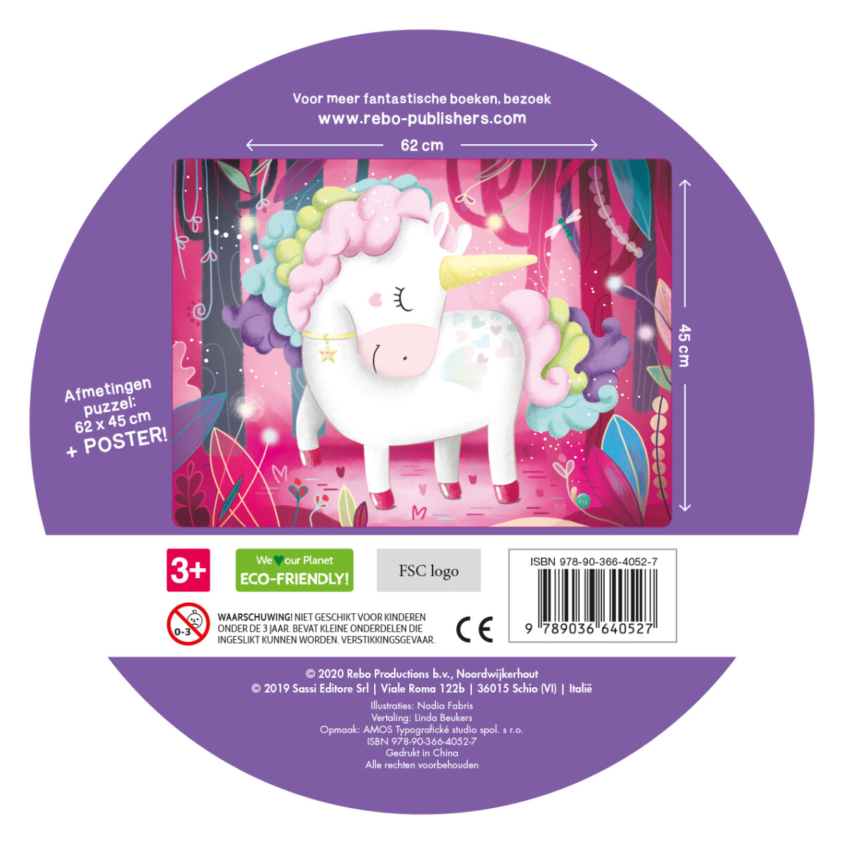 Mooie ronde box met boekje en giga puzzel van 30 stukjes. Het boekje is van hard stevig karton met daarin een rijmend verhaaltje. Afmetingen 62 x 45 cm met poster! Leeftijd 3+