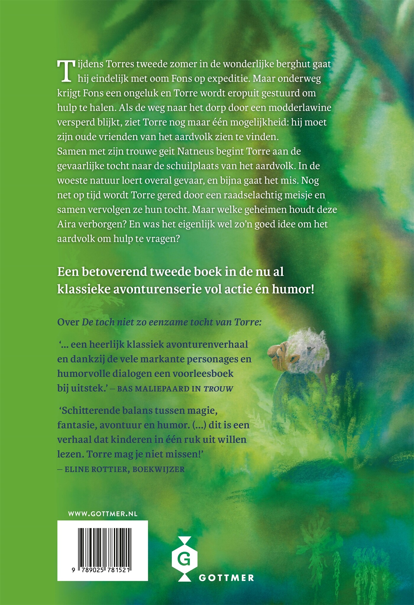 Een jaar na zijn grote avontuur keert Torre terug naar de wonderlijke berghut. Hij is best alleen geweest, dus het is heerlijk om weer bij oom Fons te zijn. En ze gaan op expeditie! Maar dan breekt Fons tijdens noodweer zijn enkel en moet Torre met Natneus hulp gaan halen. Als de weg naar het dorp door modder versperd blijkt, gaat Torre op zoek naar zijn oude aardvolk vrienden. In de woeste natuur loert overal gevaar en het gaat bijna mis, maar een raadselachtig meisje redt hem. Lukt het ze om samen oom Fons in veiligheid te brengen? En was het wel zo’n goed idee om het aardvolk om hulp te vragen? Eén ding is zeker: de terugkeer van Torre zal iedereen raken en dit kinderboek houdt je op het puntje van je stoel.