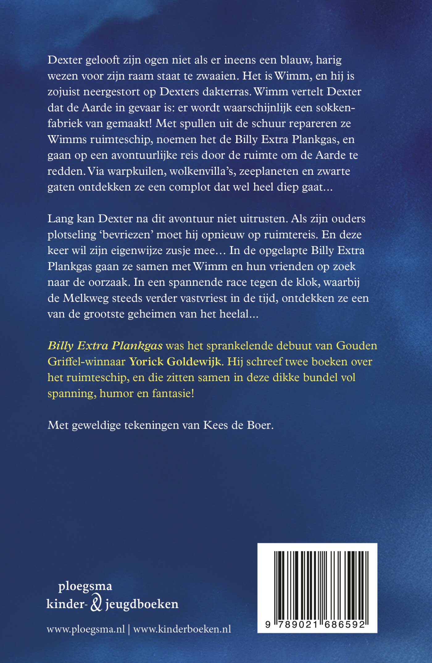 Twee avontuurlijke boeken in één band, van Gouden Griffel-winnaar Yorick Goldewijk. De ruimtereizen van de Billy Extra Plankgas is geschikt om voor te lezen vanaf 7 jaar, zelf lezen vanaf 9 jaar.