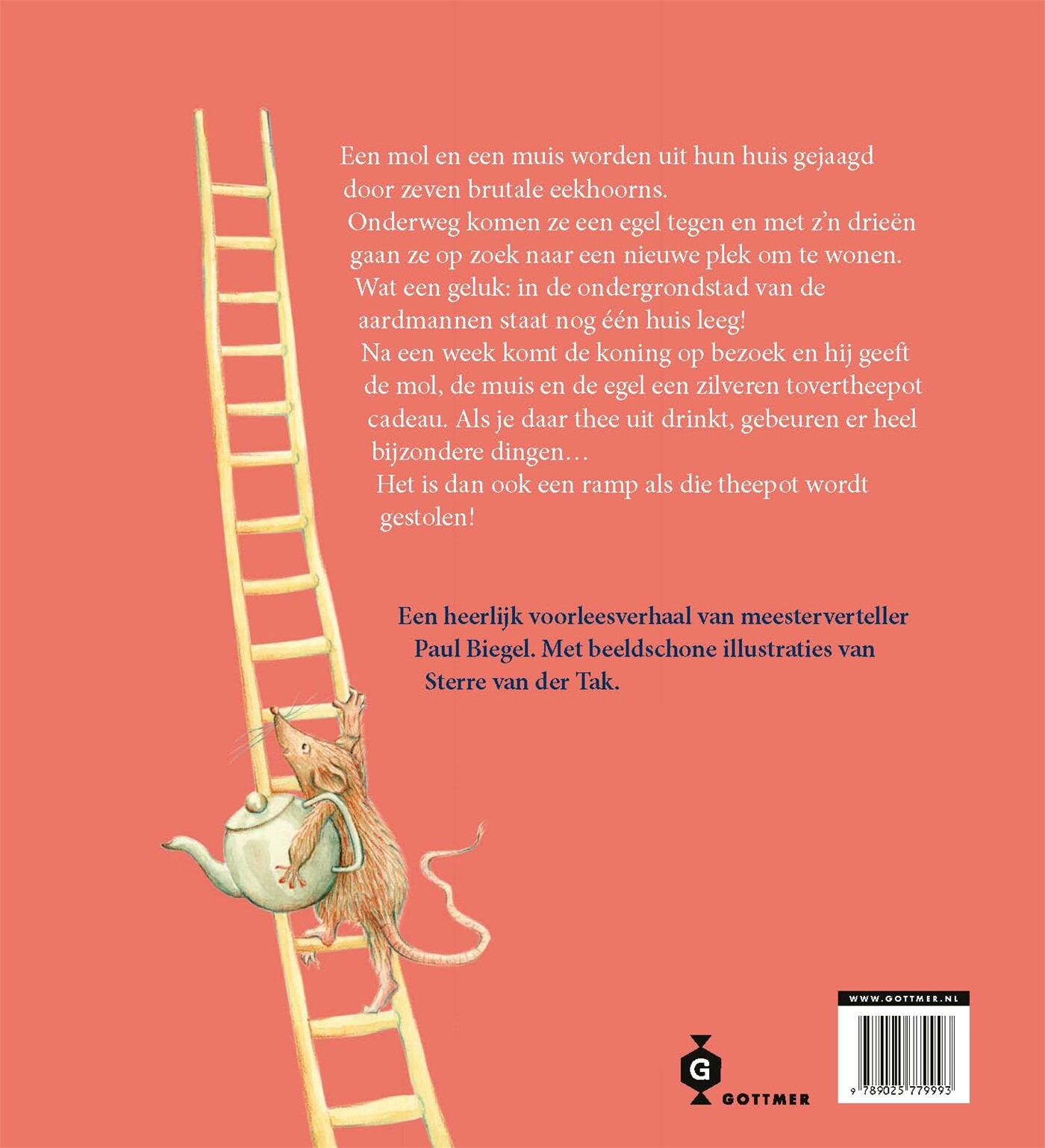 ‘De tovertheepot’ is een prachtig klassiek Biegel-sprookje. Het verhaal is nu voor het eerst beschikbaar als volledig prentenboek. Op een dag wordt er aan de deur van Mevrouw Mol haar prachtige huis geklopt en staat ze oog in oog met zeven brutale eekhoorns. Die zijn vastberaden om haar hol over te nemen! Samen met haar trouwe kok Muis en de egel die ze onderweg tegenkomt, slaat mevrouw Mol op de vlucht naar de ondergrondse stad van de aardmannen. Daar ontmoeten ze de koning, die hen niet alleen een huis aanbiedt, maar ook een tovertheepot als geschenk! En die theepot heeft een behoorlijk gekke uitwerking op de koning en zijn nieuwe vrienden! Wanneer de theepot wordt gestolen, dreigt de koning hen allemaal in de gevangenis te gooien. De drie proberen de dief te vinden, maar tevergeefs. Uiteindelijk stuiten ze op een verdacht gat in het plafond…