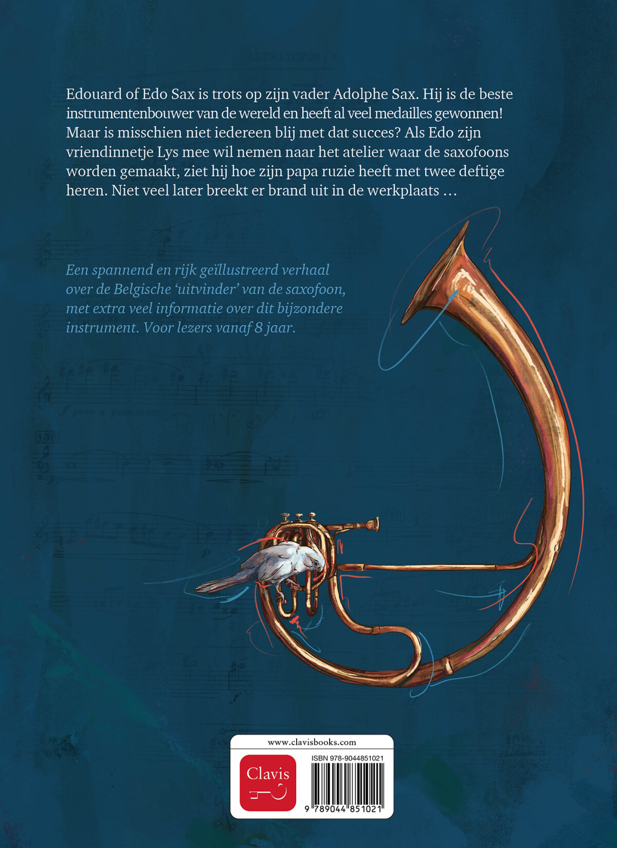 Edouard of Edo Sax is trots op zijn vader Adolphe Sax. Hij is de beste instrumentenbouwer van de wereld en heeft al veel medailles gewonnen! Maar is misschien niet iedereen blij met dat succes? Als Edo zijn vriendinnetje Lys mee wil nemen naar het atelier waar de saxofoons worden gemaakt, ziet hij hoe zijn papa ruzie heeft met twee deftige heren. Niet veel later breekt er brand uit in de werkplaats …