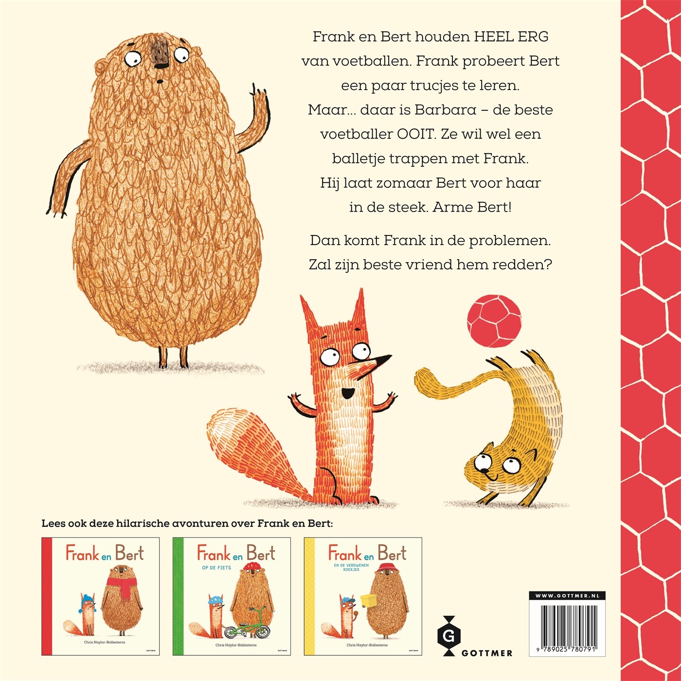 De heerlijk eigenwijze karakters Frank en Bert zijn terug met een nieuw avontuur: ‘Frank en Bert trappen een balletje’. Dit vierde verhaal over de twee vrienden is een opzichzelfstaand vervolg op ‘Frank en Bert’, ‘Frank en Bert op de fiets’ en ‘Frank en Bert en de verdwenen koekjes’ – over de avonturen van een slimme vos en een vriendelijke beer die beste vrienden zijn.