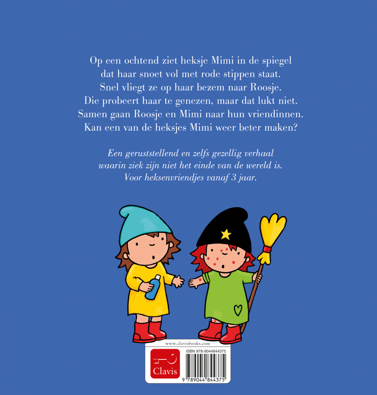 Op een ochtend ziet heksje Mimi in de spiegel dat haar snoet vol met rode stippen staat. Snel vliegt ze op haar bezem naar Roosje. Die probeert haar te genezen, maar dat lukt niet. Samen gaan Roosje en Mimi naar hun vriendinnen. Kan een van de heksjes Mimi weer beter maken?