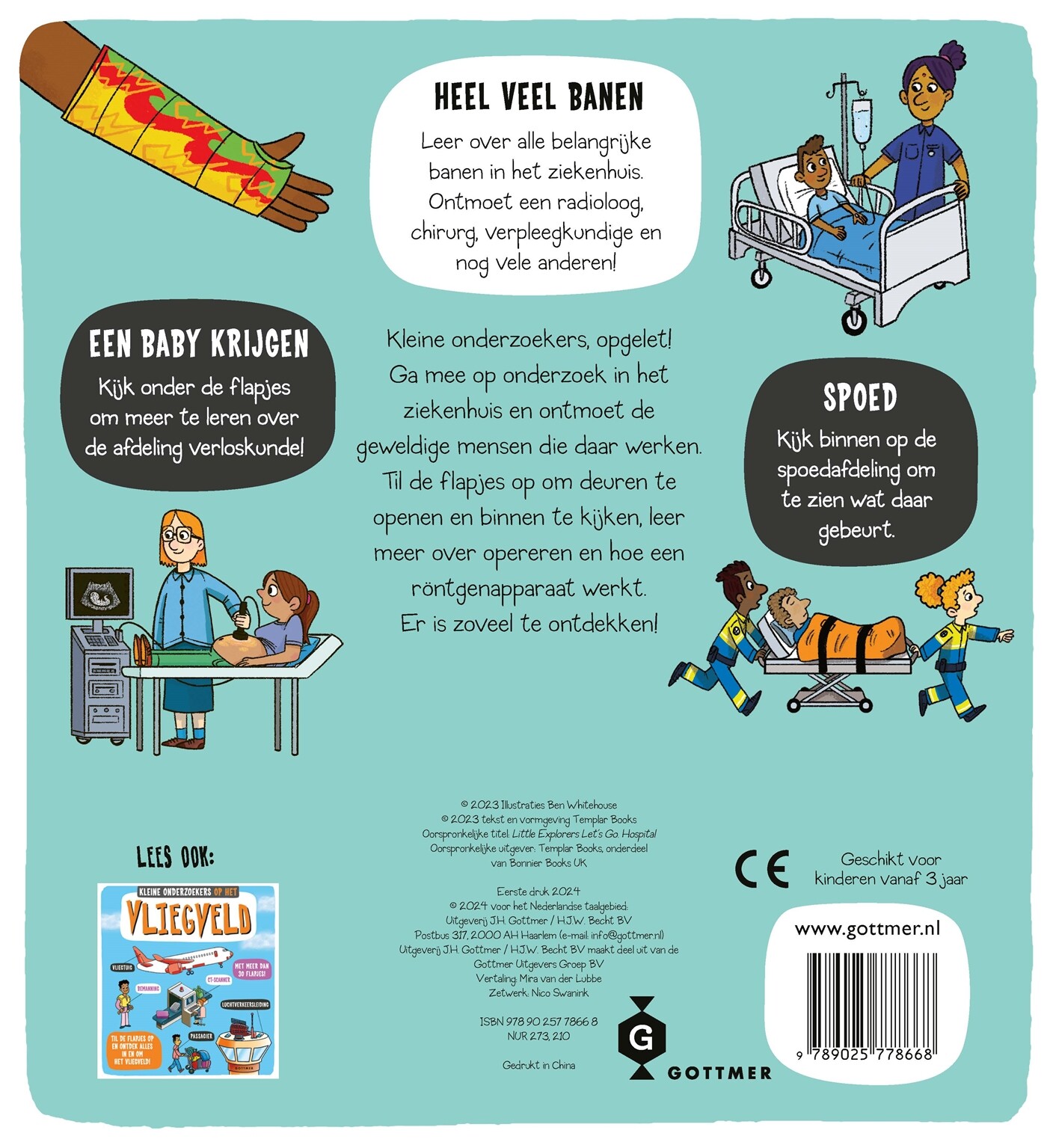 De unieke non-fictieboekenreeks ‘Kleine onderzoekers’ maakt complexe informatie begrijpelijk voor jonge kinderen vanaf 4 jaar, zonder hen te onderschatten. Met meer dan 30 flapjes met duidelijke antwoorden, is ‘Kleine onderzoekers – In het ziekenhuis’ een waardevolle toevoeging aan de reeks. Het onderwerp ziekenhuis spreekt nieuwsgierige kleuters in het bijzonder aan en dit boek biedt een boeiende verkenning van de medische wereld. Lees ook de andere informatieve delen in de reeks: ‘Kleine onderzoekers – Voertuigen’ en ‘Kleine onderzoekers – Op het vliegveld’. Geschikt voor een leeftijd van 4 jaar en ouder.