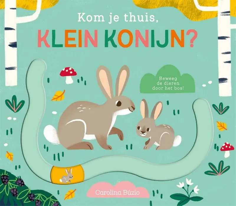 Ontmoet in ‘Kom je thuis, klein konijn?’ vier babydieren die in het bos hun weg naar huis moeten terugvinden. Kleine lezers kunnen in dit boek van dik karton met bewegende schuifjes in elke spread het konijntje, de vos, een babybeer en een jonge uil veilig thuisbrengen naar hun ouders. De peuters kunnen de schuifjes zelf heen en weer bewegen over vier unieke paden door een prachtig geïllustreerd bos. Ondertussen worden de fijne motoriek en concentratie gestimuleerd en komen er belangrijke eerste woordjes over de natuur langs.
