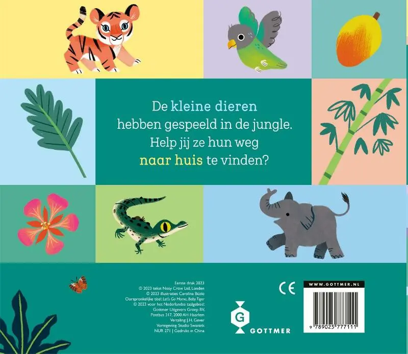 Ga op ontdekkingsreis door de jungle en help vier babydieren om hun huis terug te vinden in ‘Kom je thuis, kleine tijger?’. Peuters kunnen zelf met de schuifjes langs vier unieke paden wandelen om zo het huis van de babydieren terug te vinden. Een kleine tijger, olifant, papegaai en krokodil hebben hulp nodig. Goed voor de ontwikkeling van de hand-oogcoördinatie en de fijne motoriek, maar vooral heel erg leuk om mee te spelen. Met de gemakkelijk te bewegen schuifjes en lieve illustraties gaan peuters op avontuur om de kleine dieren te helpen en spelenderwijs nieuwe woordjes te leren.