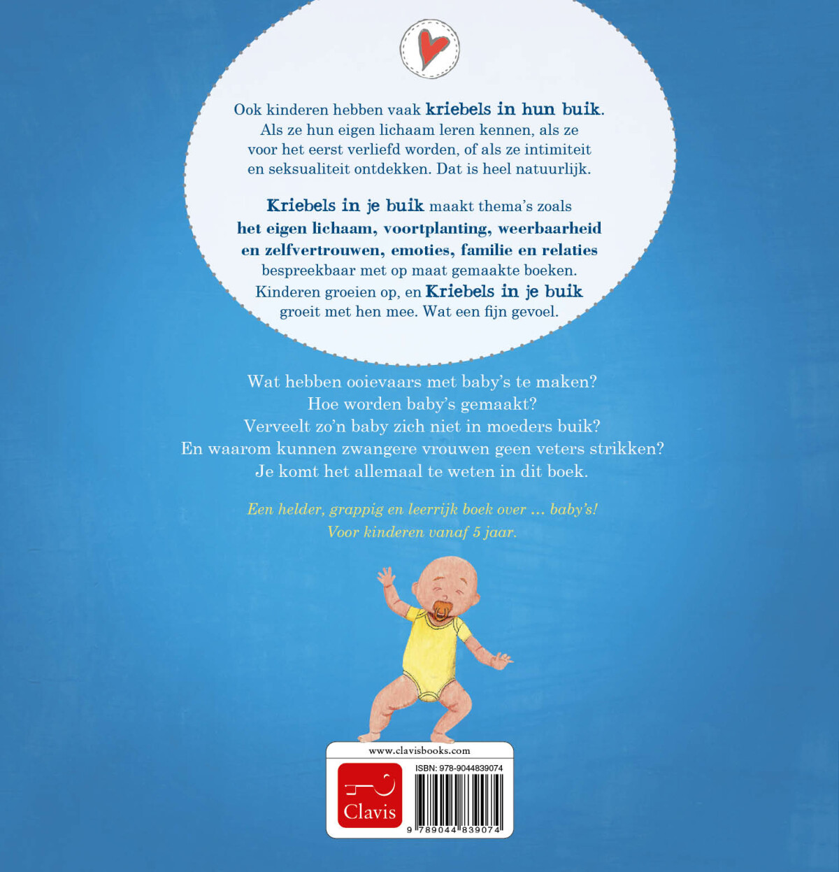 Wat hebben ooievaars met baby’s te maken? Hoe worden baby’s gemaakt? Verveelt zo’n baby zich niet in moeders buik? En waarom kunnen zwangere vrouwen geen veters strikken? Je komt het allemaal te weten in dit boek.
