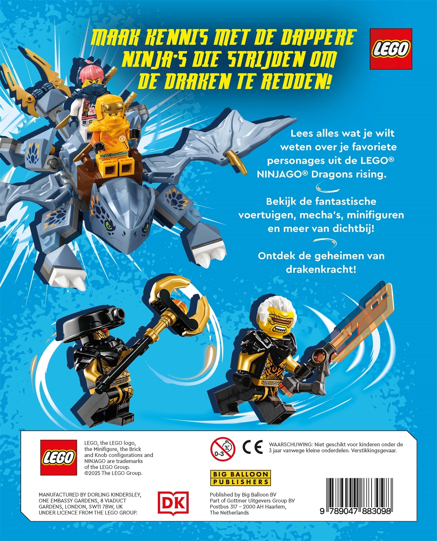 In ‘LEGO® Ninjago® – Dragons rising’ maak je kennis met de dappere ninja’s die strijden om de draken te redden! Ontdek de geheimen van drakenkracht en leer alles over je favoriete personages, voertuigen, mecha’s en minifiguren uit de ‘LEGO® Ninjago Dragons rising’. Je krijgt bij dit LEGO®-boek een minifiguur van Sora cadeau. ‘LEGO® NINJAGO® – Dragons rising’ is een leuk kinderboek voor kinderen vanaf 7 jaar. Het LEGO®-avontuur begint zodra je als kind je allereerste LEGO®-steentje vastpakt. Met de vrolijk gekleurde bouwstenen van LEGO® kunnen zowel kinderen als volwassenen een eigen wereld creëren. Of je een eigen stad wilt bouwen, de snelste voertuigen of de mooiste gebouwen, met LEGO® kan het allemaal. Dit creatieve en duurzame speelgoed is niet meer weg te denken!