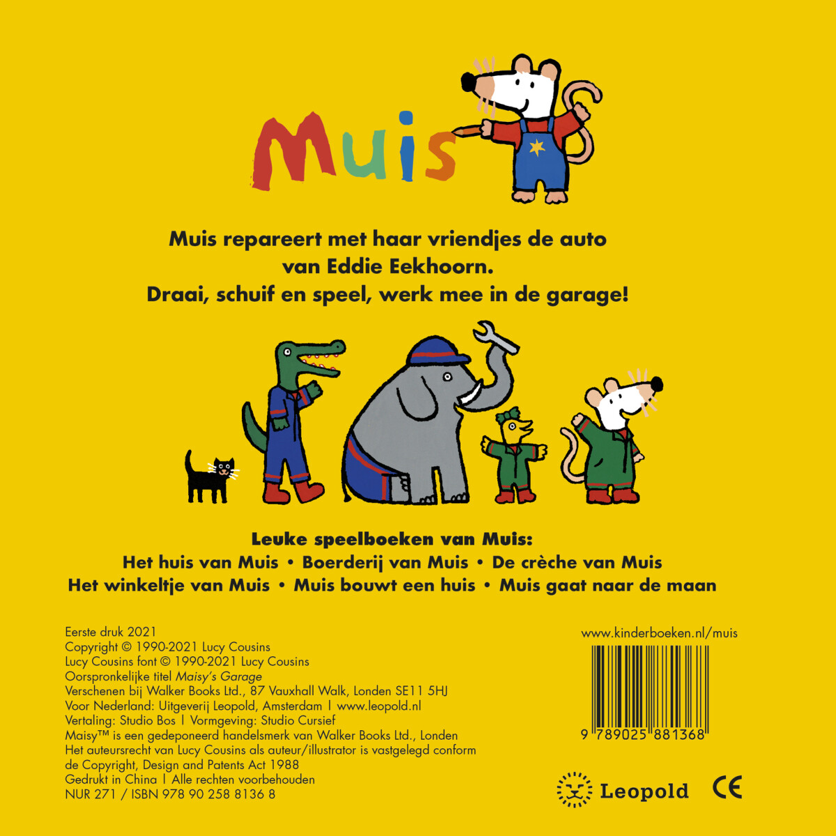 Kijk hoe de autogarage werkt. Draai, schuif en speel met dit kartonboek van Muis. Vanaf 2 jaar.