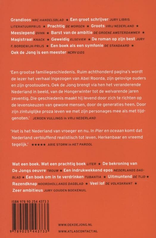 Pier en oceaan’ is een grootse roman, de lezer wordt het verhaal ingezogen van Abel Roorda, zijn gelovige familie en het veranderde Nederland van de Hongerwinter tot de welvarende jaren zeventig.