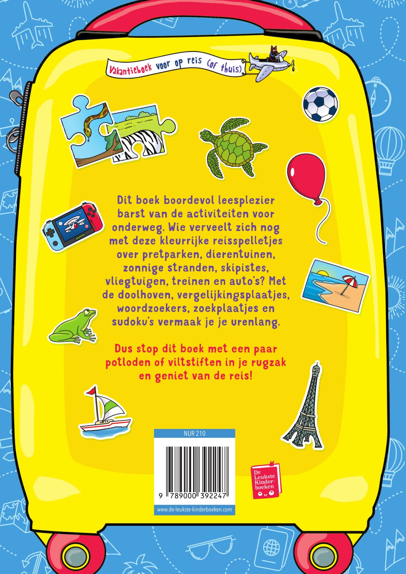 Geen kind verveelt zich meer met dit kleurrijke boek vol reisspelletjes over pretparken, dierentuinen, zonnige stranden, vliegtuigen, treinen en auto’s. Stop dit boek met een paar potloden of viltstiften in de rugzak en ieder kind vermaakt zich urenlang met doolhoven, vergelijkingsplaatjes, woordzoekers, zoekplaatjes of sudoku’s. Perfect voor de fervente jonge puzzelaar en voor de ouder die graag rustig reist.