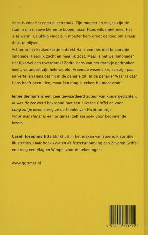 Hans is voor het eerst alleen thuis. Hij zou met zijn moeder en zusjes de stad in gaan om nieuwe kleren te kopen, maar hij wilde niet mee. Hij vond het te warm. En zijn moeder vond gelukkig dat hij groot genoeg was om alleen thuis te blijven. Achter in de kast ontdekt Hans een fles met knaloranje limonade. Heerlijk zacht en heerlijk zoet. Maar is het wel limonade? Het lijkt meer op een toverdrank! Vanaf het moment dat Hans van de drank gedronken heeft, verandert zijn hele wereld. Hans zit in de penarie. En hij is vastbesloten daar weer uit te komen, zo goed en zo kwaad als het gaat.