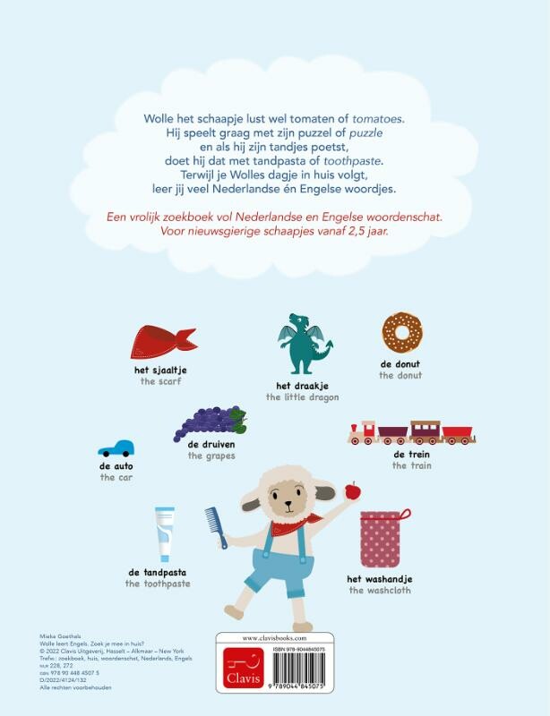 Terwijl je Wolles dagje in huis volgt, leer jij veel Nederlandse én Engelse woordjes.